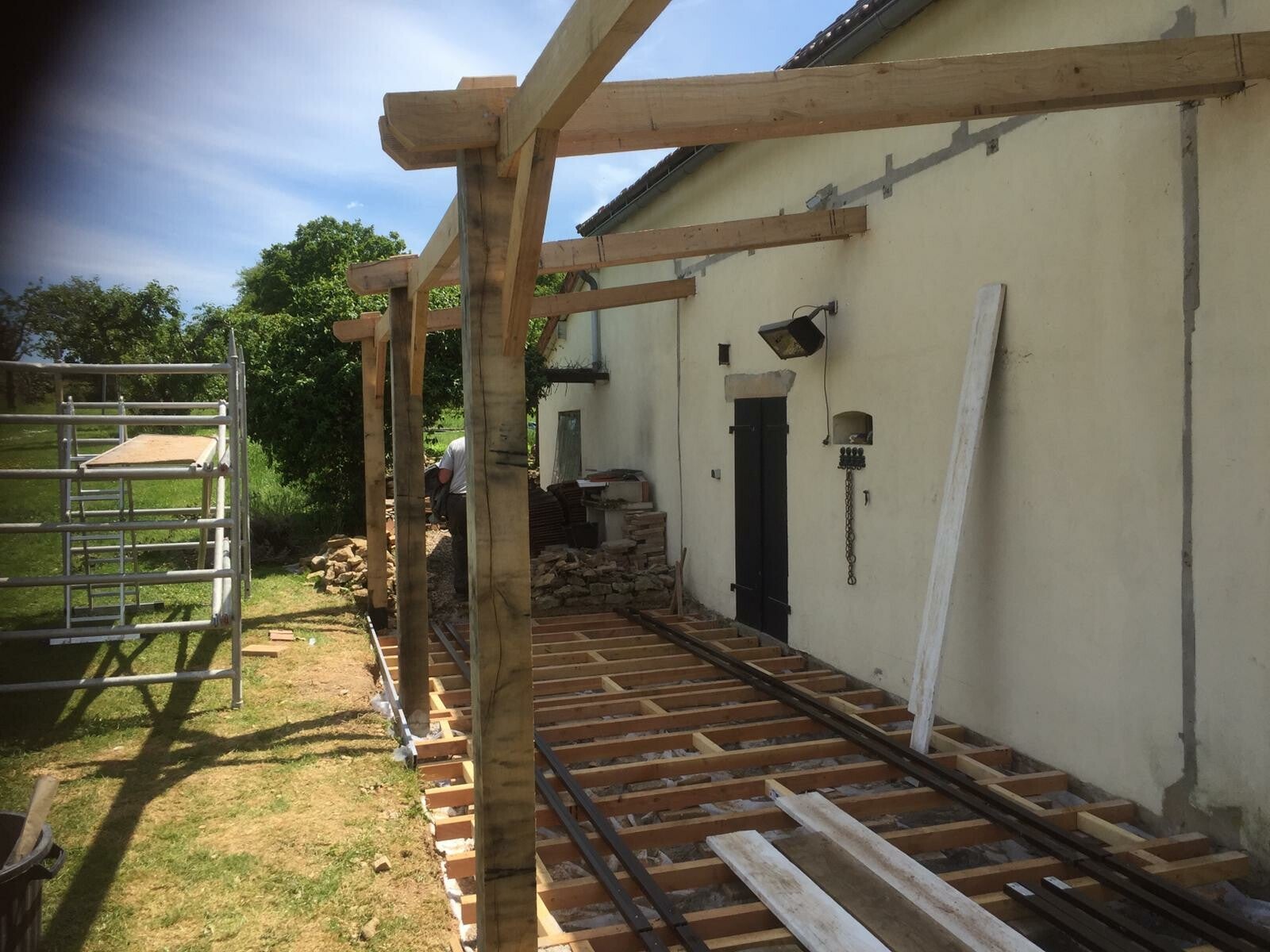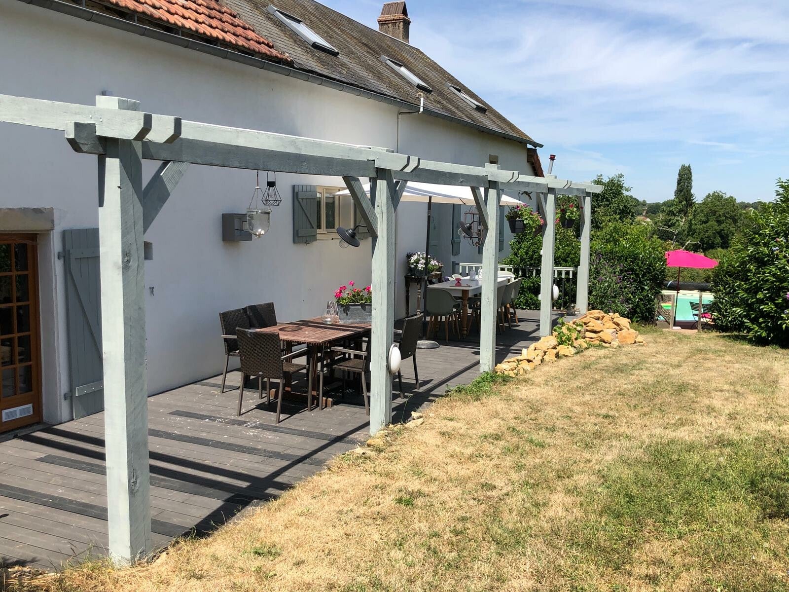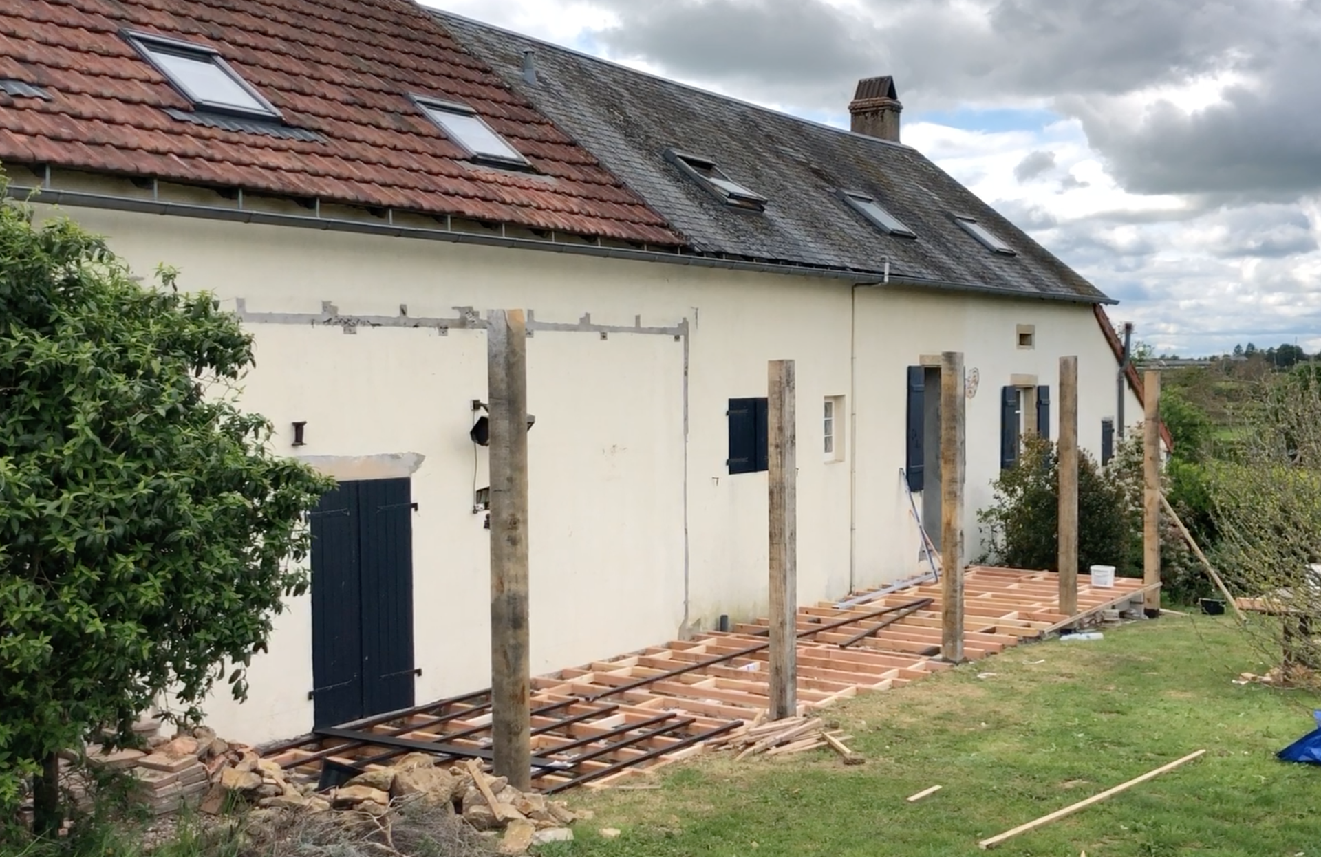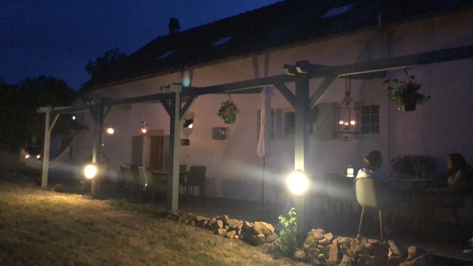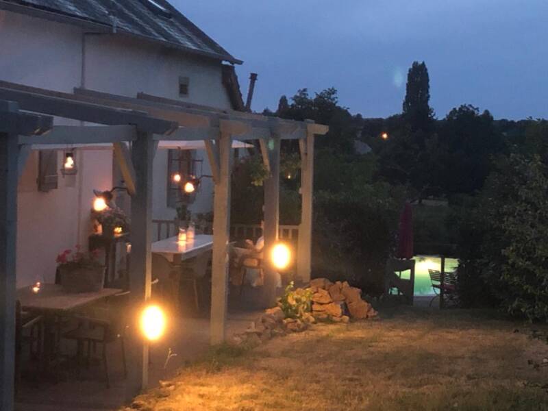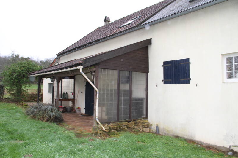 Achter het huis bevond zich een klein afdak met een plaatsje dat vanuit de huiskamer te bereiken was. Een beetje donker en misschien ook wel een beetje te klein als je met meerdere mensen wilt buiten zitten.